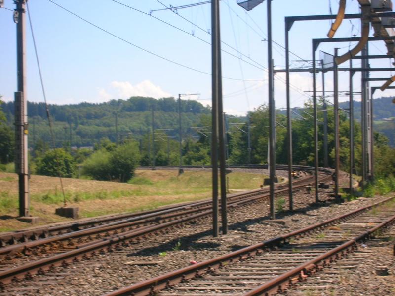 Het is wel zeker dat het in Zwitserland is. Wat er met die gekke bovenleidingconstructie aan de hand is, weet ik nog niet...