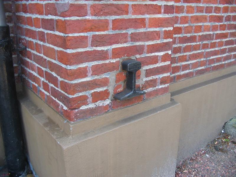 Wat het is, dat is niet de vraag. Het is een hoogtemerk, ingemetseld in de muur van een stationsgebouw.
