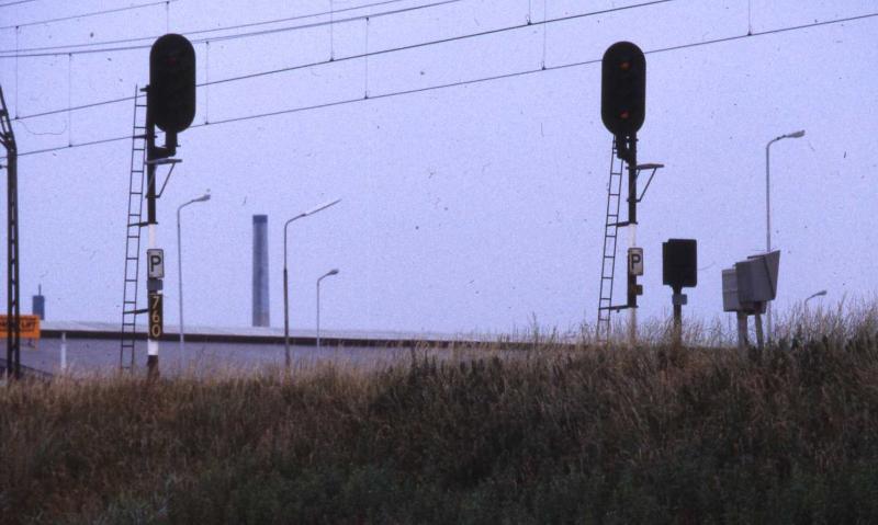 Vlaardingen. Niet de beste foto, maar het dubbel geel seinbeeld is goed genoeg te zien.