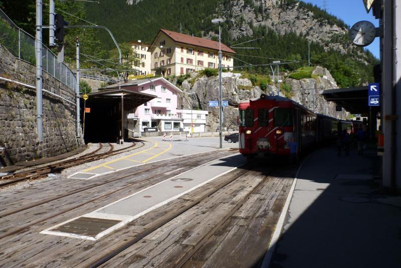 Het station van de Matterhorn-Gotthard Bahn, dat oorspronkelijk toebehoorde aan de Schöllenenbahn.