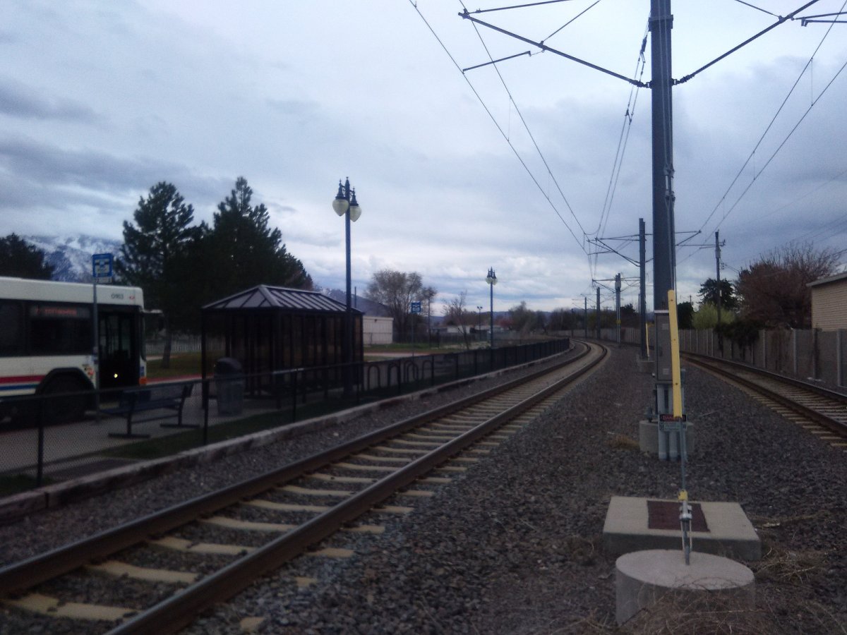 De website van UTA gaf aan dat deze bus slechts op één plaats bij een lightrailstation komt (begin-/eindpunt). Dus 1 + 1 = ...