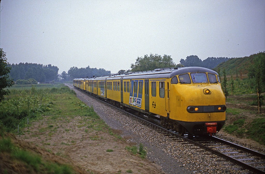 Twee drieën, dan denk ik in de eerste plaats aan Nijmegen - Venlo - Roermond. Maar ik zie volgens mij ook een gele rangeerdershelm achter een van de voorruiten, dus het zou wel eens een excursietrein kunnen zijn. Gok: Schijndel aan de oude NBDS-lijn.