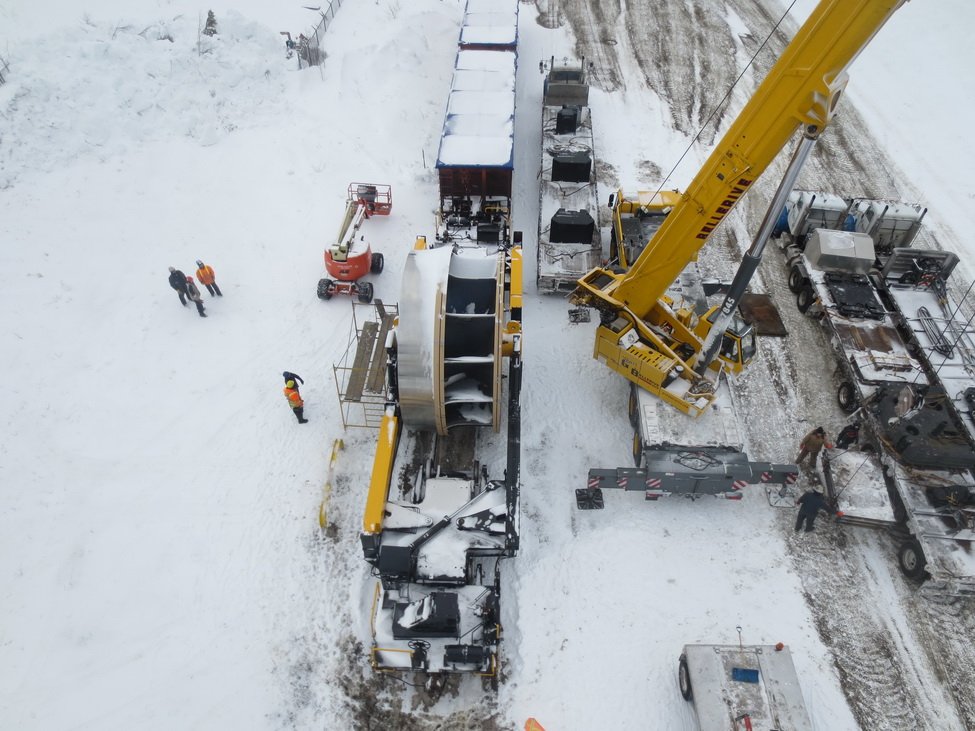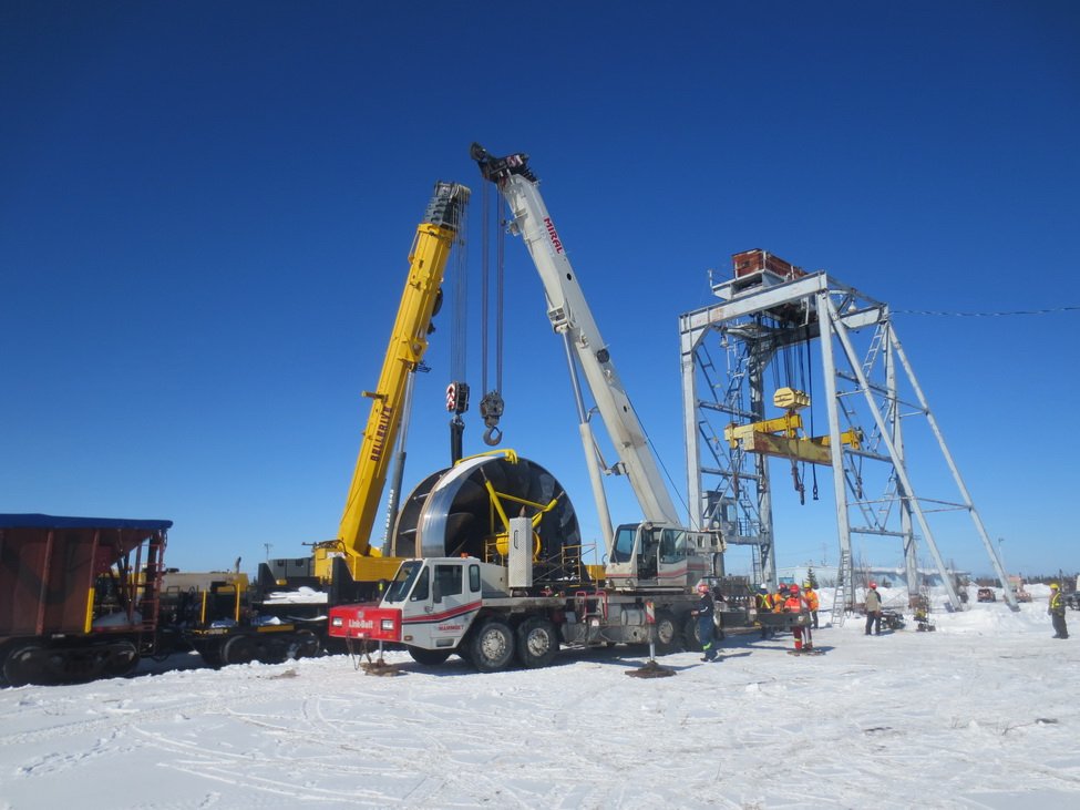 De (gele) kraan is van een bedrijf dat alleen in Quebec opereert, en ik heb op de site van Quebec hydro gekeken waar aan dammen gewerkt werd waarbij de turbines vervangen/geplaatst word.