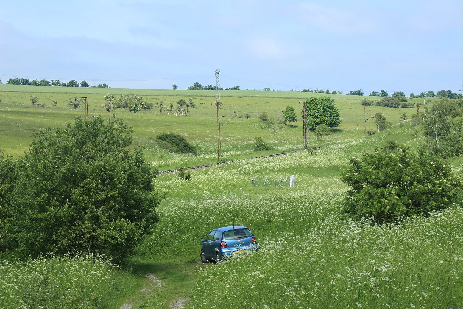 Ik heb mijn auto op een onverharde weg bij een spoorlijn geparkeerd, maar waar welke plaats ligt hier in de buurt?
