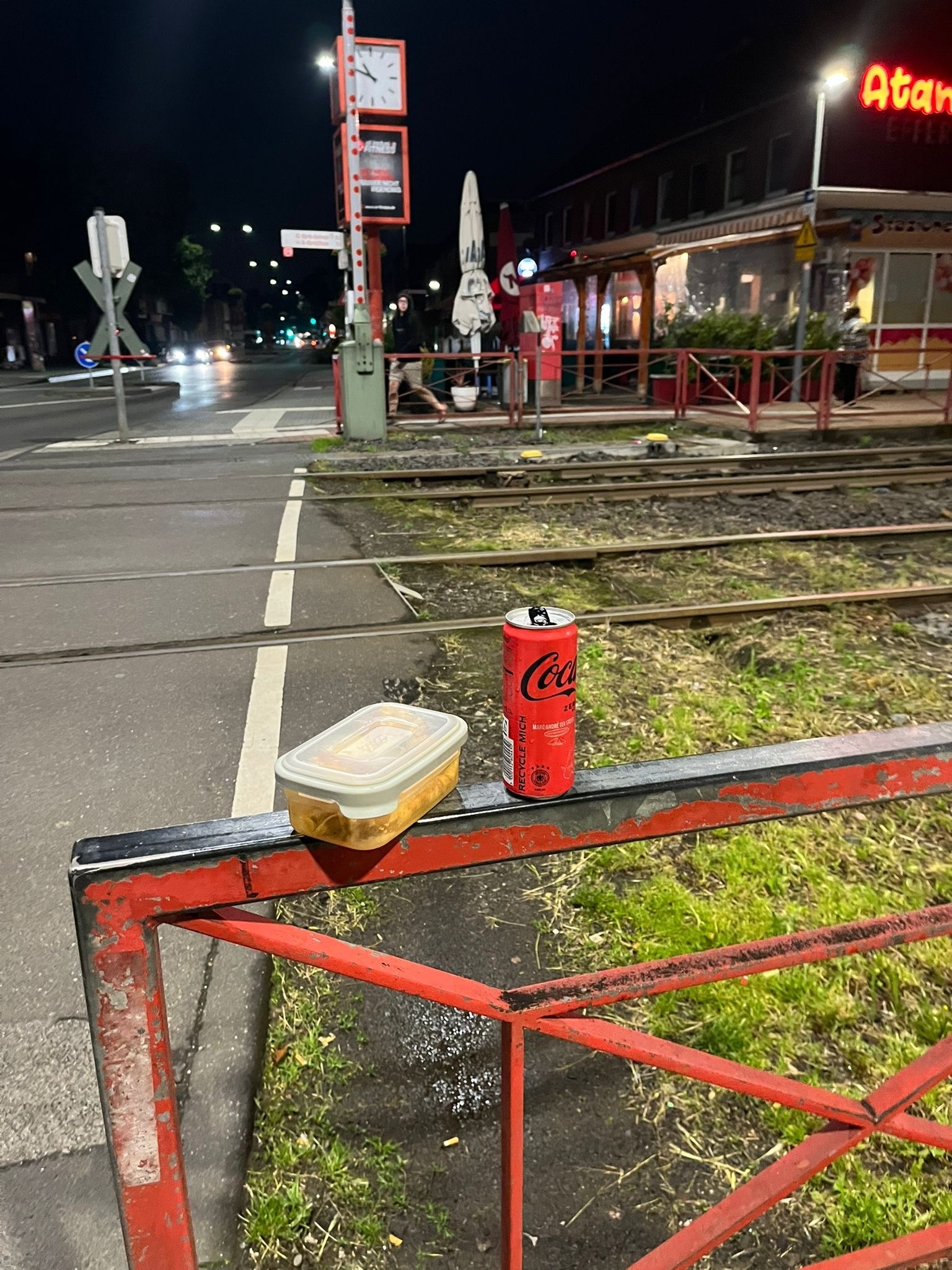 Ze had zowaar zelf nog een foto ook. Is van een brooddoos en een blikje cola op een station. Hoe heet dat station?