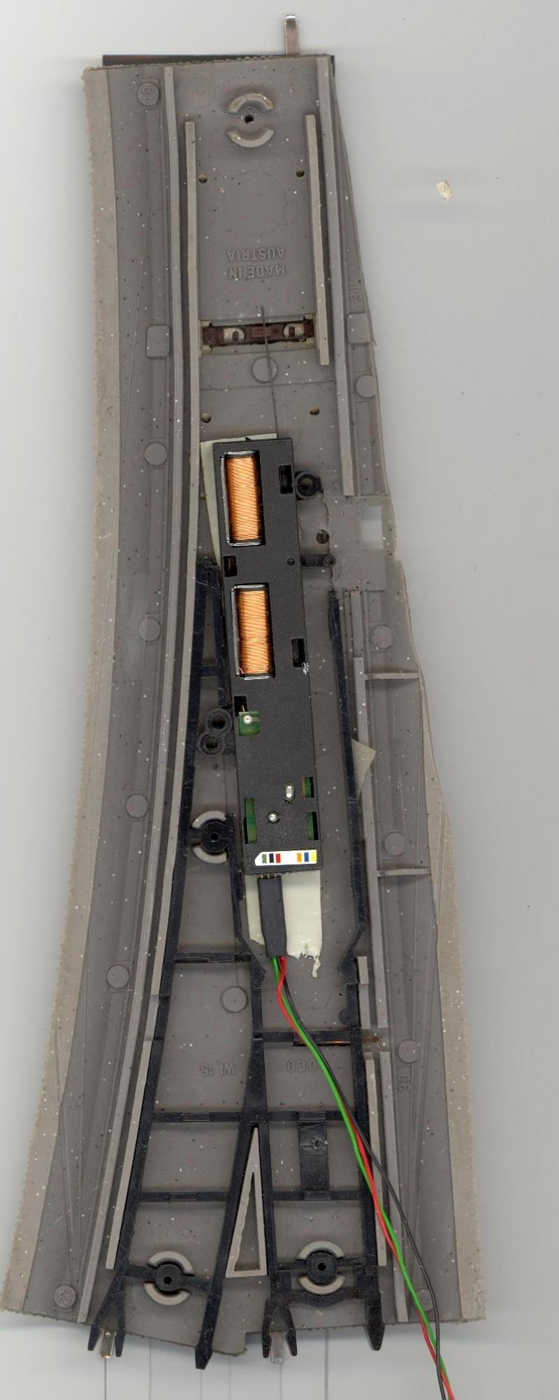 Ik heb als voorbeeld nog even een oude wissel genomen en daar de aandrijving van de Geoline in geplakt.