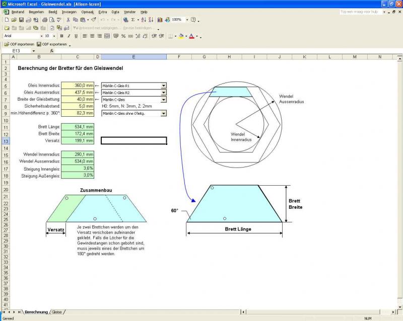Even gekeken voor je bij deze site:http://www.stayathome.ch/gleiswendel.htm en de excelstaat ingevuld: