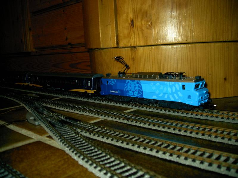 Die postbank- lok met die IC+ rijtuigen ziet IDD goed uit.