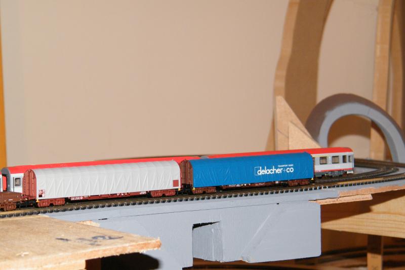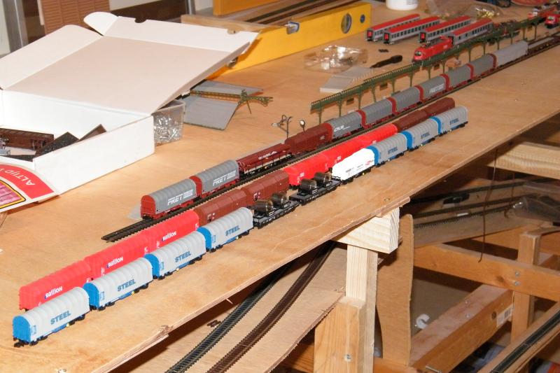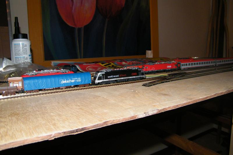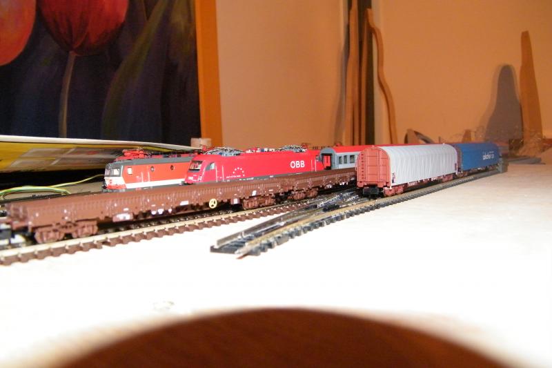 Op de kiek zie je 3 van mijn vier staaltreinen,van achter naar voren de Franse SNCF,DB/Railon en de ÖBB staaltrein.