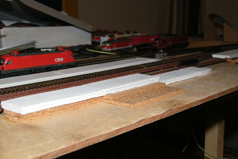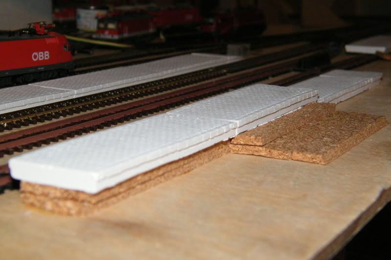 Met kurkstroken ben ik de oprit voor het perron aan het maken,dit wordt dan de basis en wordt dan afgewerkt met DAS-klei.