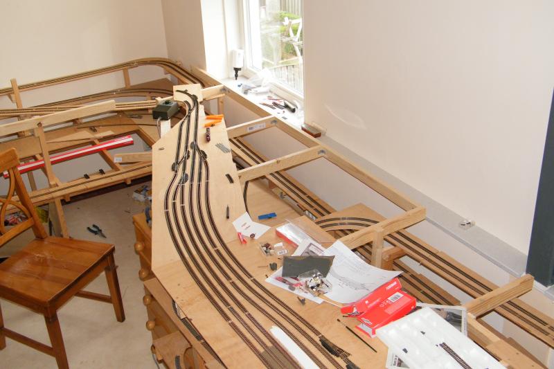 Vandaag heb ik flink kunnen verder werken aan het station en alle sporen die door de bocht lopen kunnen aansluiten.