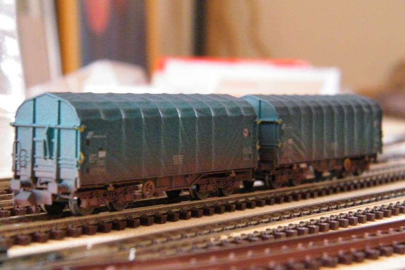De eerste twee pics zijn van de geweatherde uitvoering van de schuifzeilwagen van de FS,het is van MU.