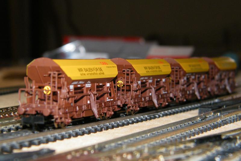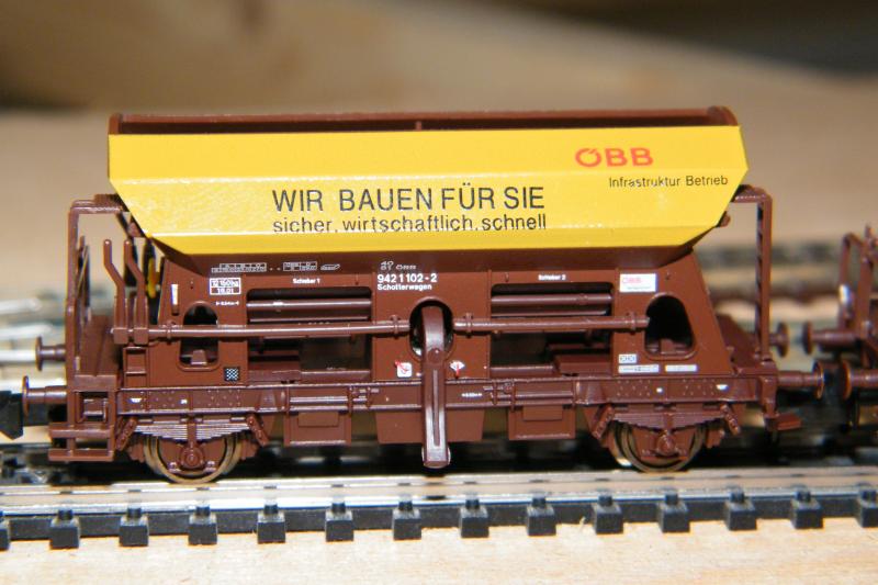 En een paar foto's van de nieuwe onderlossers van de ÖBB "Wir bauen fur Sie" die gebruikt worden voor spoorbouw.