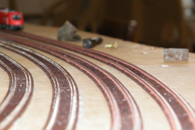 Ik vind het maken van de verkanting lekker eenvoudig,een dun ijzerdraadje bijvoorbeeld onder de buitenrail van de boog leggen heeft al effeckt :).