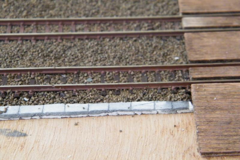 Verders heb ik van de laatste restjes klei de kabelgoten alias inspectiepaden langs het spoor afgemaakt.