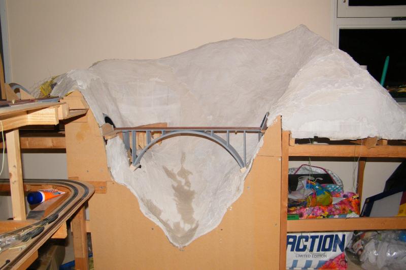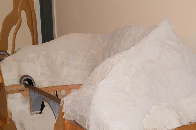 Achter de stuwwal ga ik van de week nog licht opvullen met piepschuim en dan kan er nog een laagje gips over.