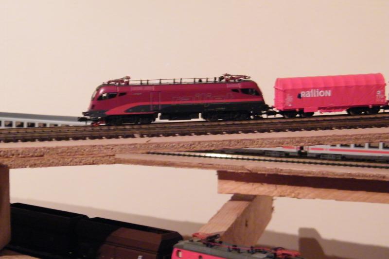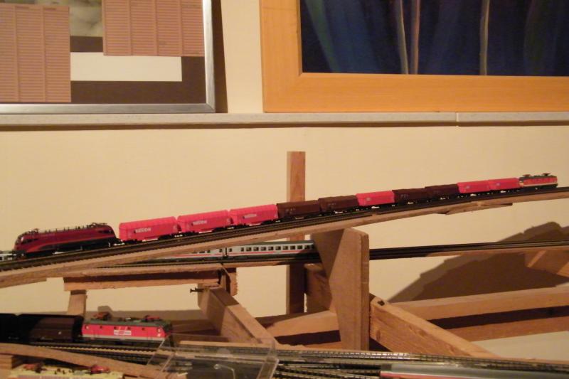 Op den eerste foto komt de Railjet Taurus 1116.200 in probe-lackierung voorbij met de bekende staaltrein met als nachschiebelok de 1044.201 in Schachbrett uitvoering.