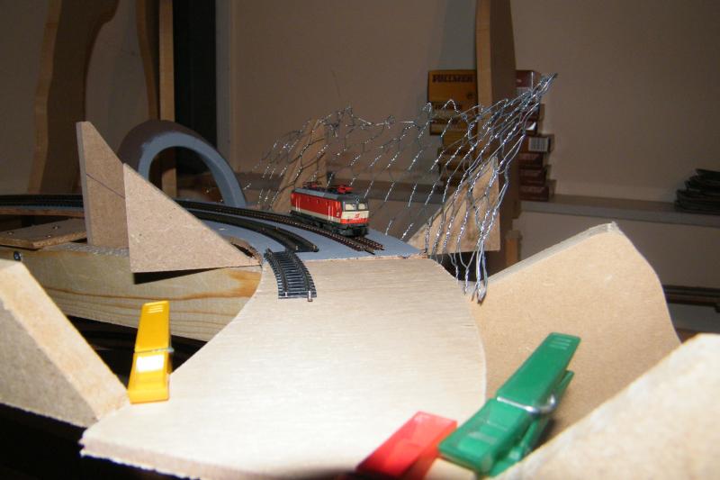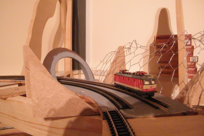 Aan linkse zijde van de Kaponiggrabenbrug heb ik tevens een stuk bergwand aan gebracht,wat bovenaan overloopt in de ingraving van het spoor die de Kaponigrabentunnel induikt.