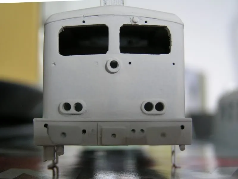 Jawel, eindelijk weer wat verder, de loc is nu in de primer gezet. Door de primer is goed te zien waar er nog geplamuurd en geschuurd  moet worden. (toch niet zo glad en strak als ik dacht :-|)