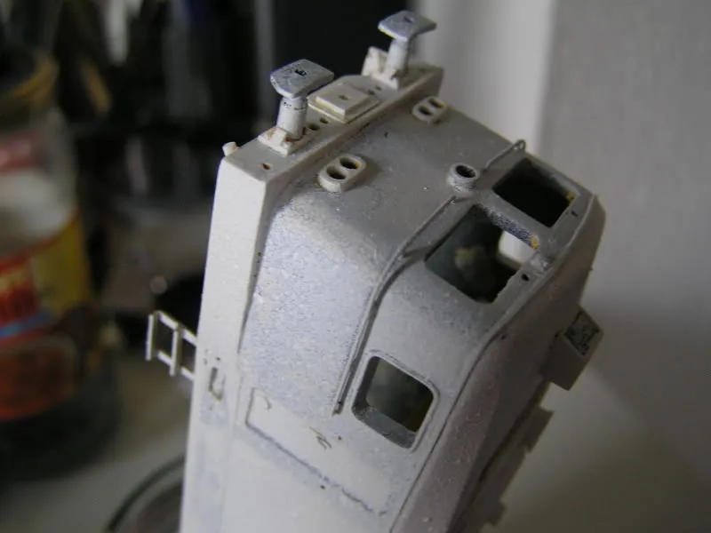 Ik heb primer van Revell uit een spuitbus gebruikt, maar net ietjes te weinig geschud. Gevolg een stuclaag op de 1400. Was uiteraard niet de bedoeling . Blijkbaar moet je langer schudden dan op de spuitbus staat... Maar goed, wederom in de Bluewonder en maar weer opnieuw spuiten .Maarten