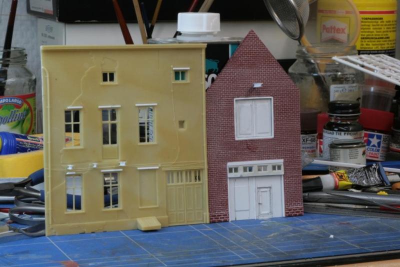 EDIT: Je kunt deze resin gevel wel links naast de klokgevel plaatsen, Eric, dan klopt zo'n om-de-hoek-gevel weer wel, maar moet je nog een strook ter breedte van twee kozijnen+muurdammen ernaast maken, naar de hoek toe. En een kloppende voorgevel natuurlijk, zet 'm op!