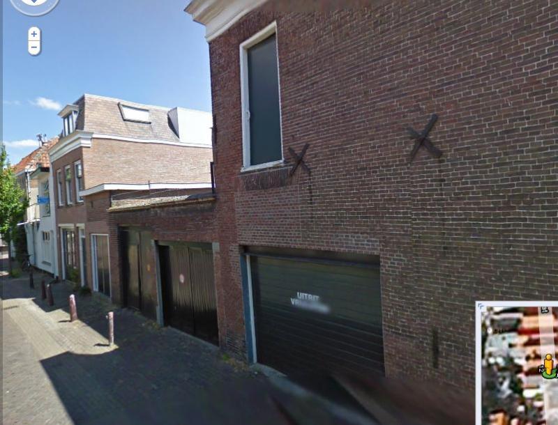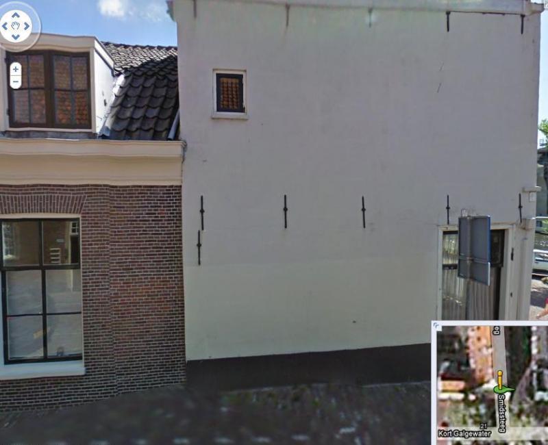 maar wat ik wil illustreren is dat een wirwar van soorten gevels best mogelijk is. En Eric kan er natuurlijk altijd nog een hoekpandje van maken als het helemaal moet kloppen; zijdeuren komen regelmatig voor in panden waar de 'hoofdstraat' te smal is om probleemloos te laden/lossen. In Leiden (en vast op genoeg andere plaatsen) zijn daar wel voorbeelden van, bv het pand op de 2e foto heeft meerdere laaddeuren aan de zijkant. Dat is voor een ontwerper niet logisch, maar vaak het gevolg van allerlei verbouwingen door de eeuwen heen.