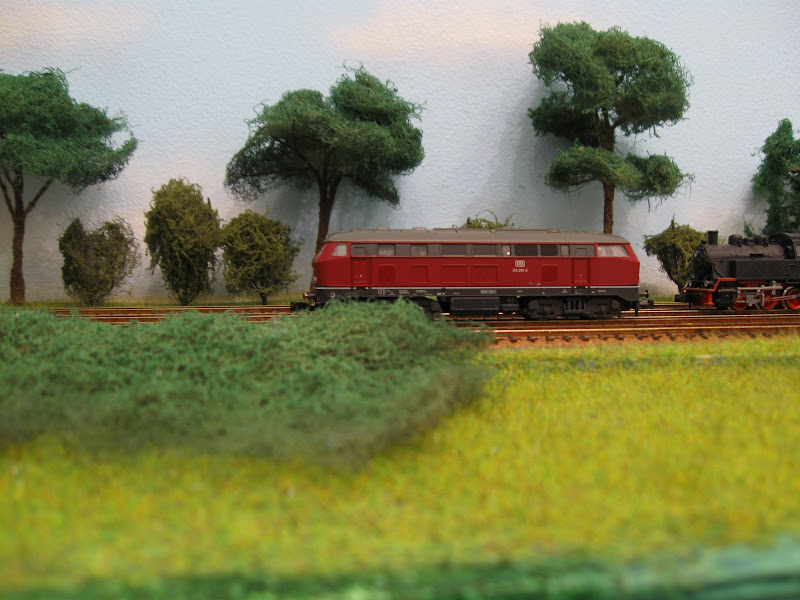 Ik heb wat bomen op de modelbaan gezet en ik heb wat gerangeerd met de treinen.