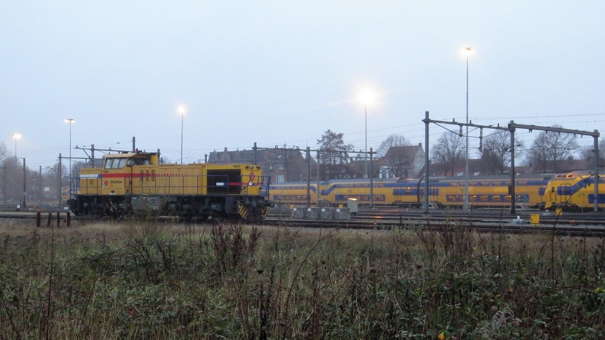 Vanmiddag stond loc 9508 (Willy) van Strukton in druilerig weer op spoor 43 in Venlo.