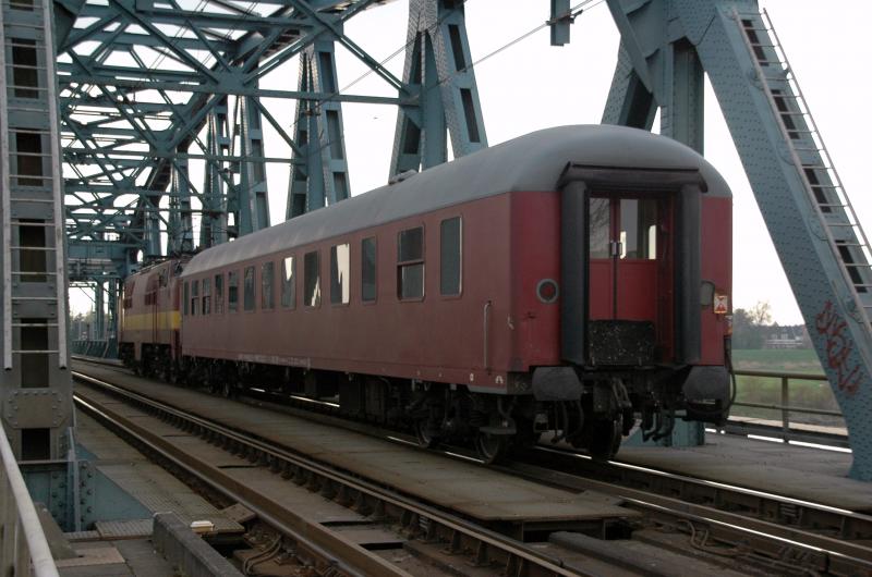 Loc met rijtuig op de IJsselbrug te Zutphen