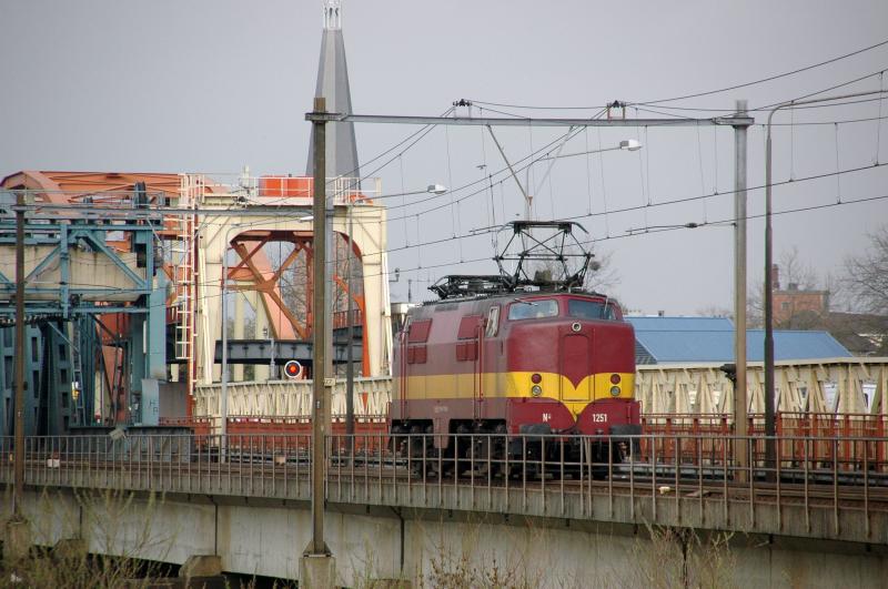 Hier de loc die de IJsselbrug te Zutphen op rijdt.