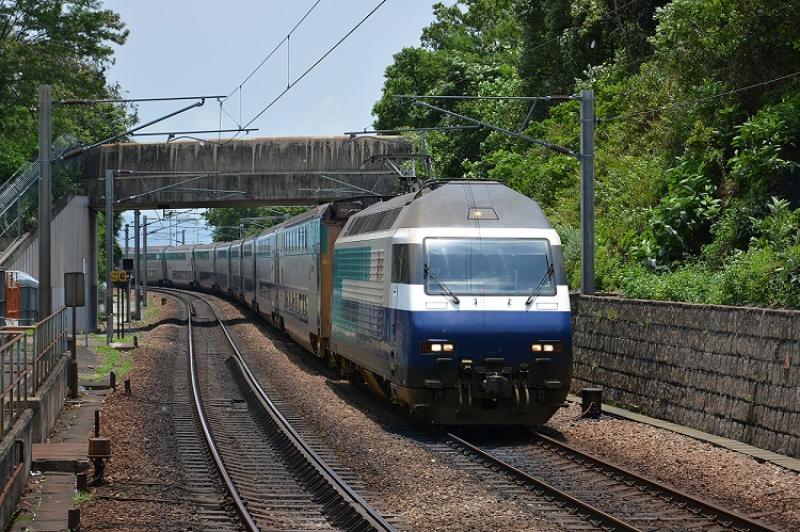 TLN 001 rijdt met Ktt-trein T823 van Guangzhou naar Hong Kong door de halte University.