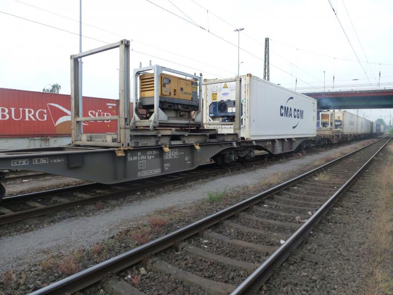 Grappige oplossing voor het lange afstands vervoer, de koelcontainers hebben eigen aggregaten voor de stroom voorziening onderweg.