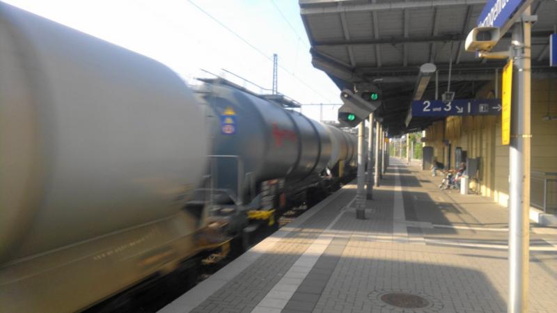 Meestal zie ik er alleen trekduw reizigerstreinen, maar nu kwam er langs het perron waar ik stond een keteltrein langs stormen.