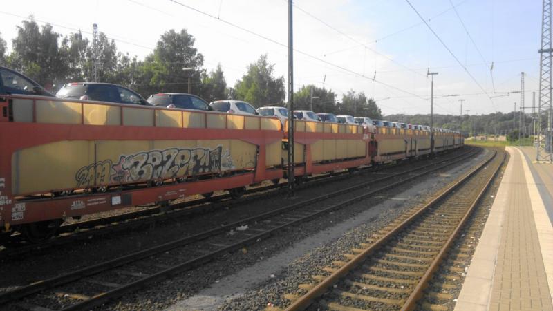 Effe het perron op om de klaarstaande autotrein (zonder lok) te fotograferen met mijn telefoon, ik had er niet op gerekend dat er op het meestal lege terrein van de DB in Herzogenrath iets te zien zou zijn