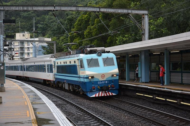 Vandaag eens in de halte University blijven hangen voor de eerste plaat en om te schuilen voor een flinke plensbui: Chinese Railways SS8 0181 met trein T814 is onderweg van Hong Kong naar Guangzhou.