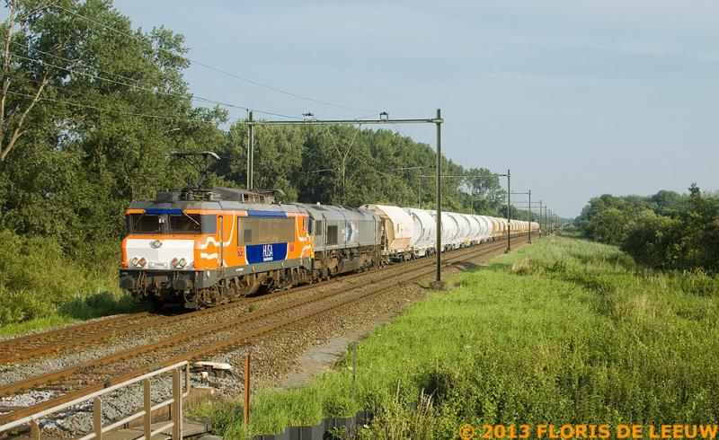 De fraaie 1600'en van HUSA worden maar zeer beperkt ingezet. Eigenlijk is alleen de Dolimetrein een prooi voor deze loc. Gisterenavond reed de beladen variant enkele uren te laat richting Veendam en zodoende kon ik hem vastleggen bij Culemborg  (y)