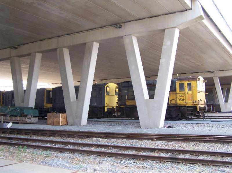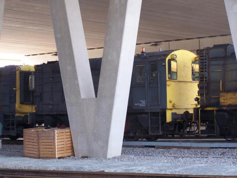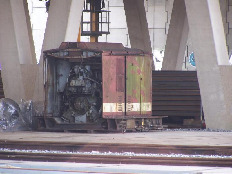 E-loc ertegen. Onder in beeld de Vlaamse reuzen op weg naar de tankplaat.