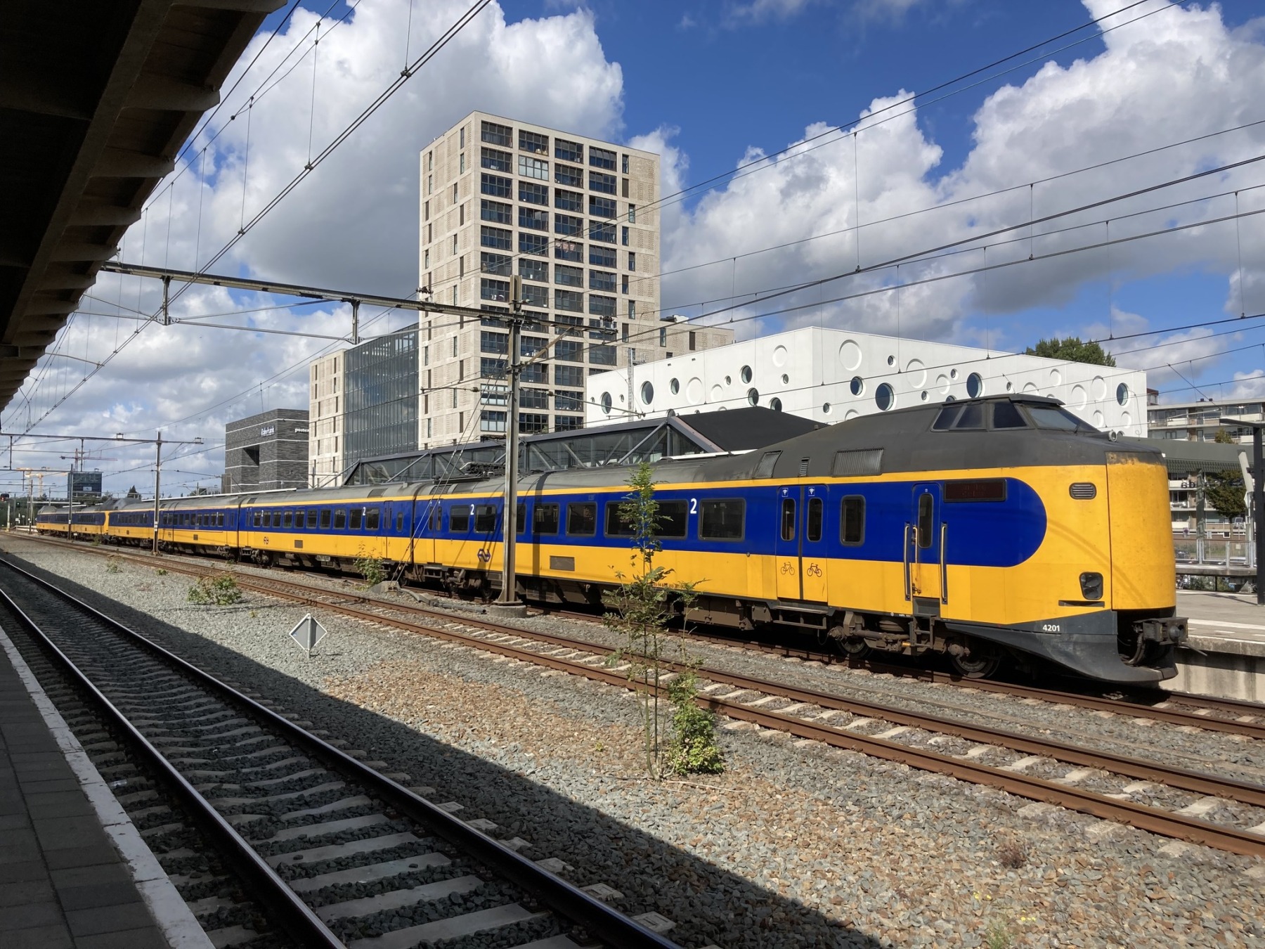 Dat klopt. De NS ICM 4201 in Gouda aan het perron met op de achtergrond de bioscoop en gebouw ‘ De Koploper ‘ op dinsdag 2 september 2025. Foto Hans van Dijk