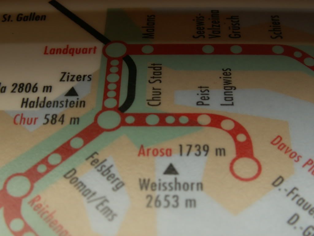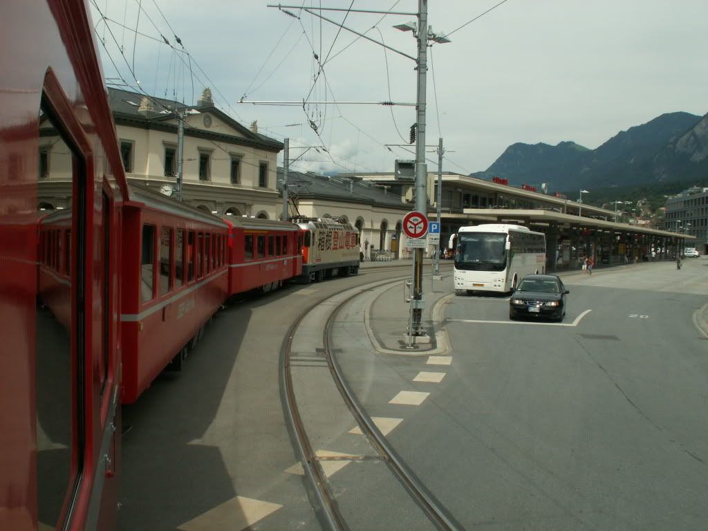 Spectaculair traject, trouwens. Interessant dat er goederenwagens meelopen in reizigerstreinen. Ook bijzonder dat het eerste deel van het traject door de straten van Chur loopt.