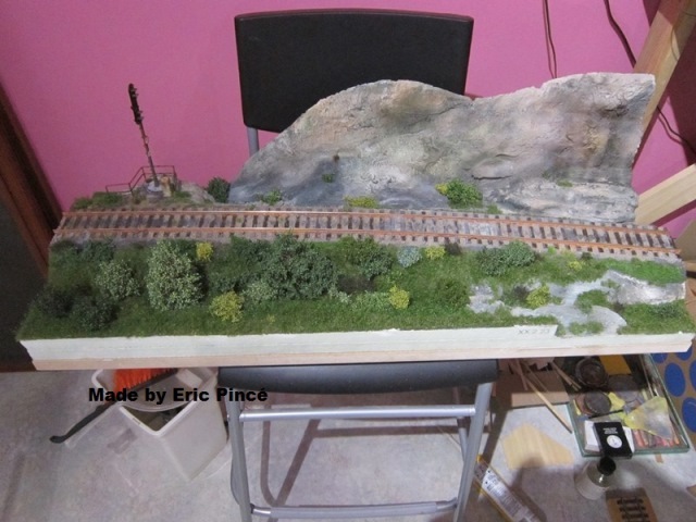 Normaal komen er nog een paar hogere struiken op te staan, eventueel tegen de rots een verloren gelopen spar (wie weet?) en dan is het afwachten voor de beschermplaten die nog moeten gemaakt worden die komen rondom de plaat gemaakt van 800x300.