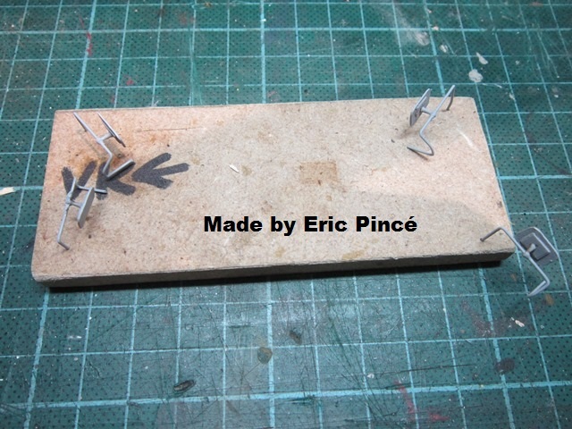 De spiegelhouders plooien, in 0,5 m/m zilver nikkeldraad. Aanpassen stuk per stuk en dan de spiegels solderen op deze houders. Gaatjes boren in de body en dan zijn alle gaten voorzien (hopelijk geen vergeten) in de body. We gaan nog eens nakijken en dan kan theoretisch deze kap wat afgeplakt worden en in de grondverf gespoten worden maar niet bij dit buienweertje denken we dan maar. Zien wel of het over blijft?