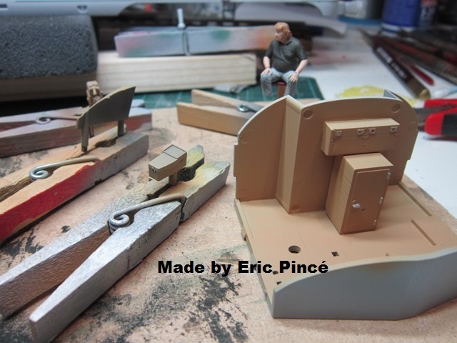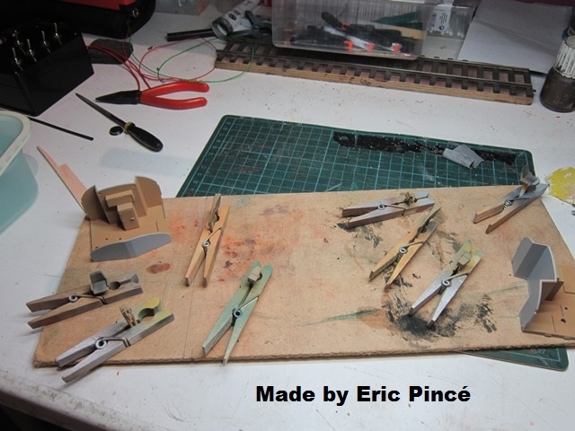 Ook de samengestelde cabines gaan we voorzien van een laagje grondverf, worden dan in één kleur gespoten, details worden dan nadien beschilderd.