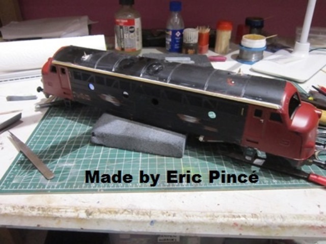Plamuur is goed uitgehard, nu afschuren en afsliesen met fijn sliespapier. Zal er een paar dagen aan zoet zijn. Ook nog bekijken voor de claxons op te zetten, komen op andere plaats dan op het dak. Misschien op voorhand inlijmen , ik zie wel of het in dezelfde kleur moet komen als de neuzen om verrassingen te voorkomen.het aantal gemaakte gaatjes voor alle andere onderdelen al nagezien en niets vergeten, oef