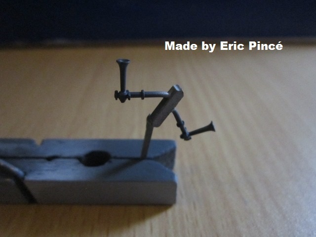 Plamuur is goed uitgehard, nu afschuren en afsliesen met fijn sliespapier. Zal er een paar dagen aan zoet zijn. Ook nog bekijken voor de claxons op te zetten, komen op andere plaats dan op het dak. Misschien op voorhand inlijmen , ik zie wel of het in dezelfde kleur moet komen als de neuzen om verrassingen te voorkomen.het aantal gemaakte gaatjes voor alle andere onderdelen al nagezien en niets vergeten, oef