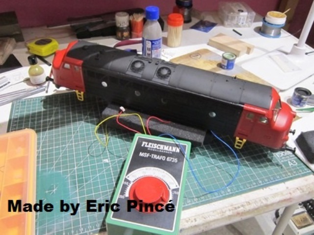 De 2 cabines locomotief 2 staan in de grondverf, figuur aangepast aan de overgebleven plaats als machinist.