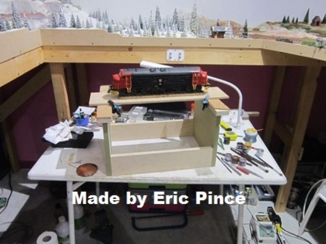 Draaistellen vervuilen en dan in feite is deze locomotief zo goed als klaar, nog enkele decals en de ruitenwissers opzetten.