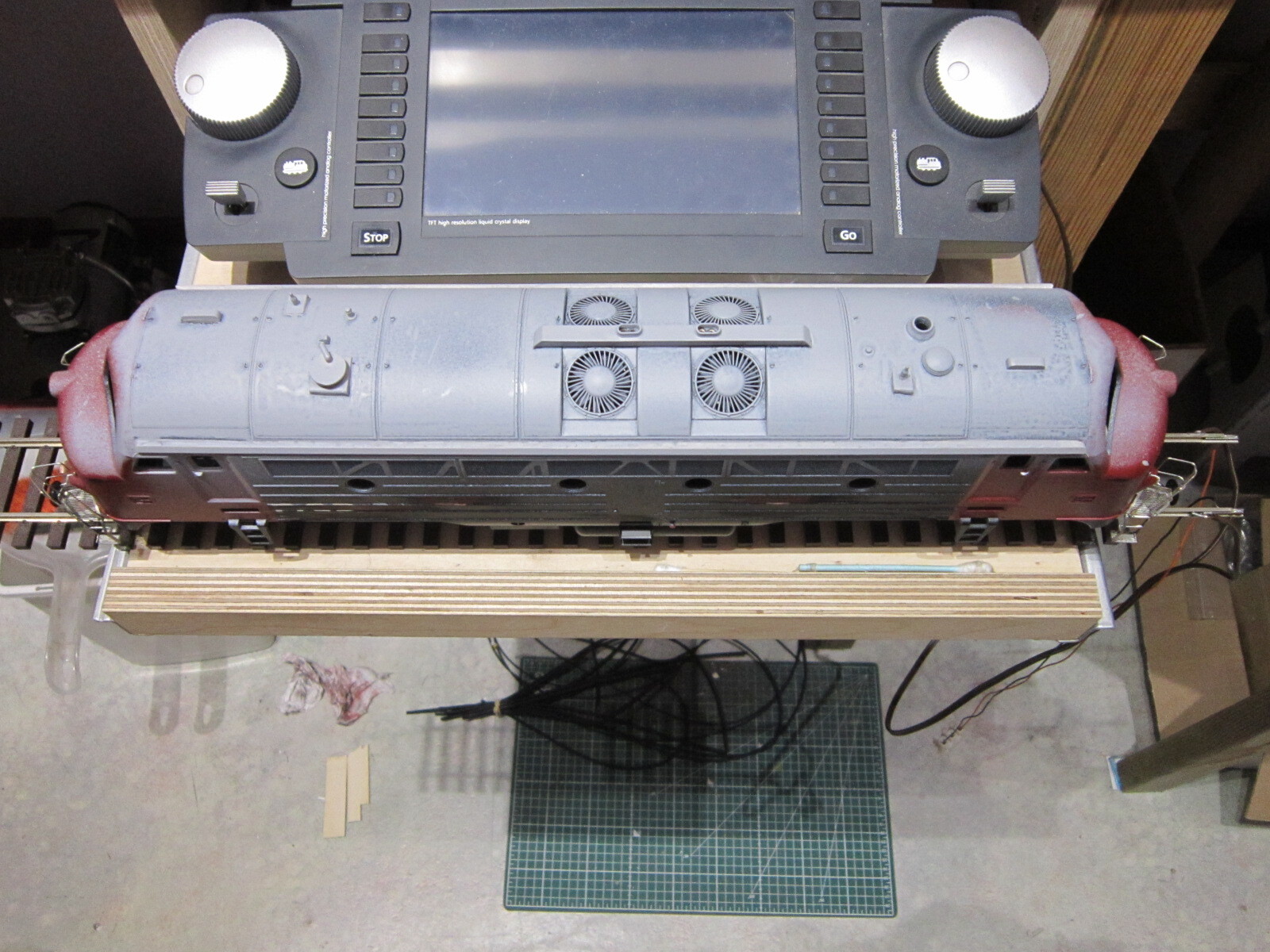 Verder gewerkt aan plaatsen van de rangeerderplatforms, kunnen nu stevig genoeg op de body geplaatst worden, nog wat plamuren en afschuren van verwijderde details, dan nog relingen maken voor de zijkanten, materiaal is al geplooid voor de kooien rangeerders platforms, komt allemaal in orde.