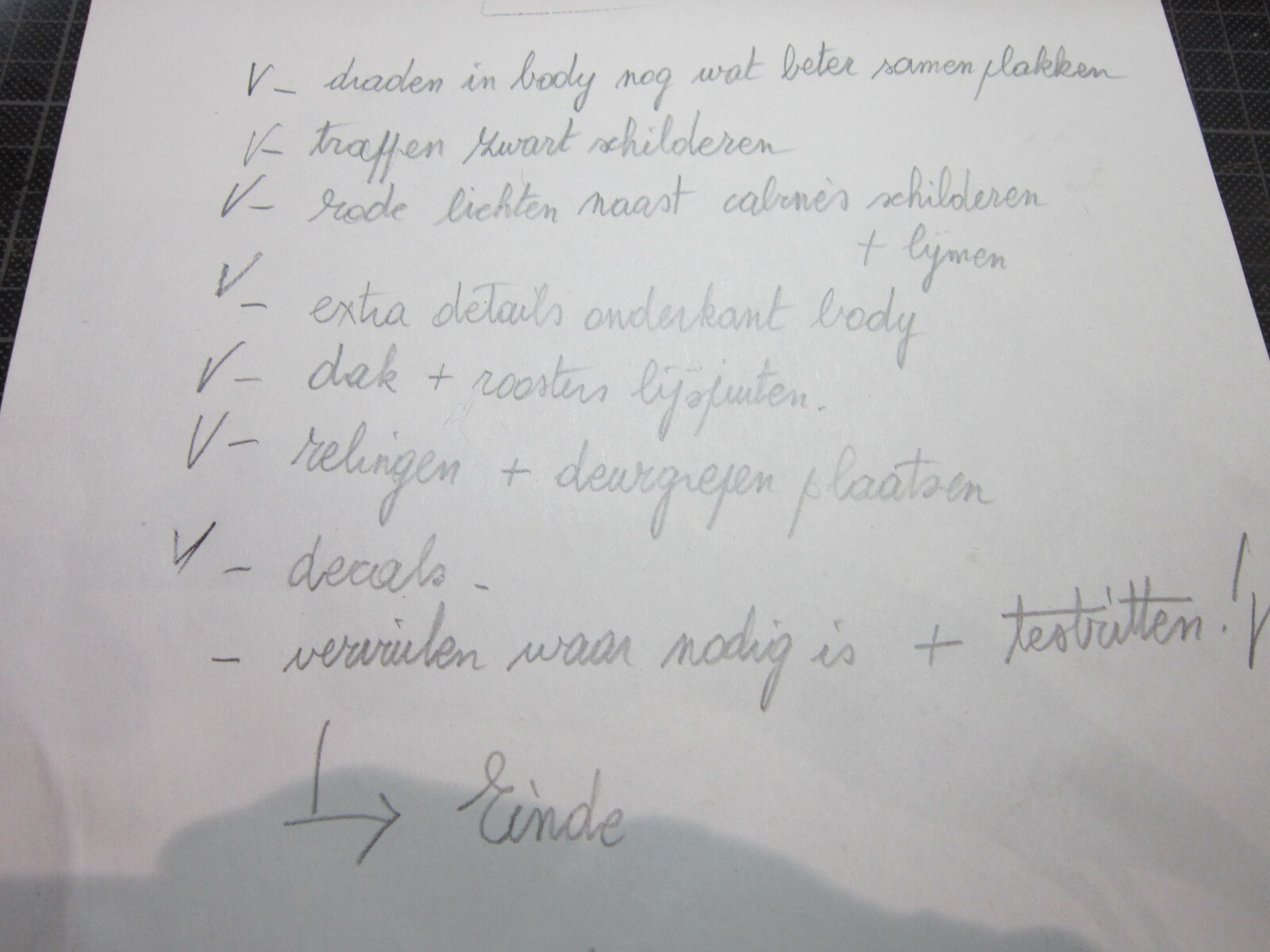 Briefke is deels afgevinkt, enkel nog vervuilen, decals staan er op maar moeten nog aantrekken.