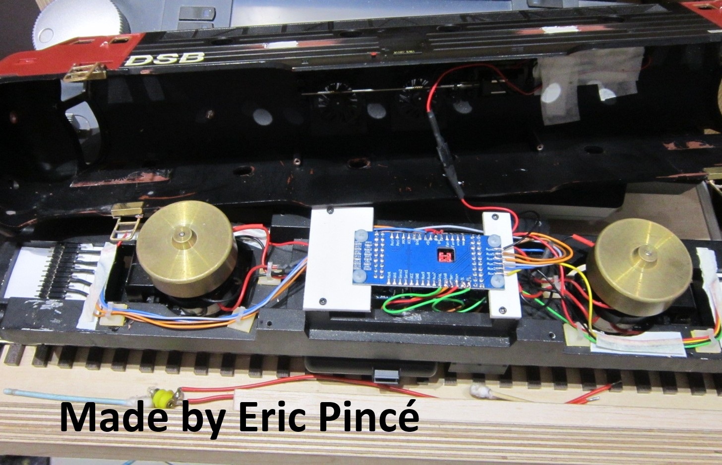 Met decoder op opstelspoortje, getest op de grote baan.