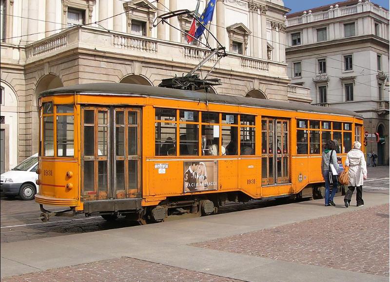 ATM tram rijdt hier op de Piazza della Scala in Milaan.